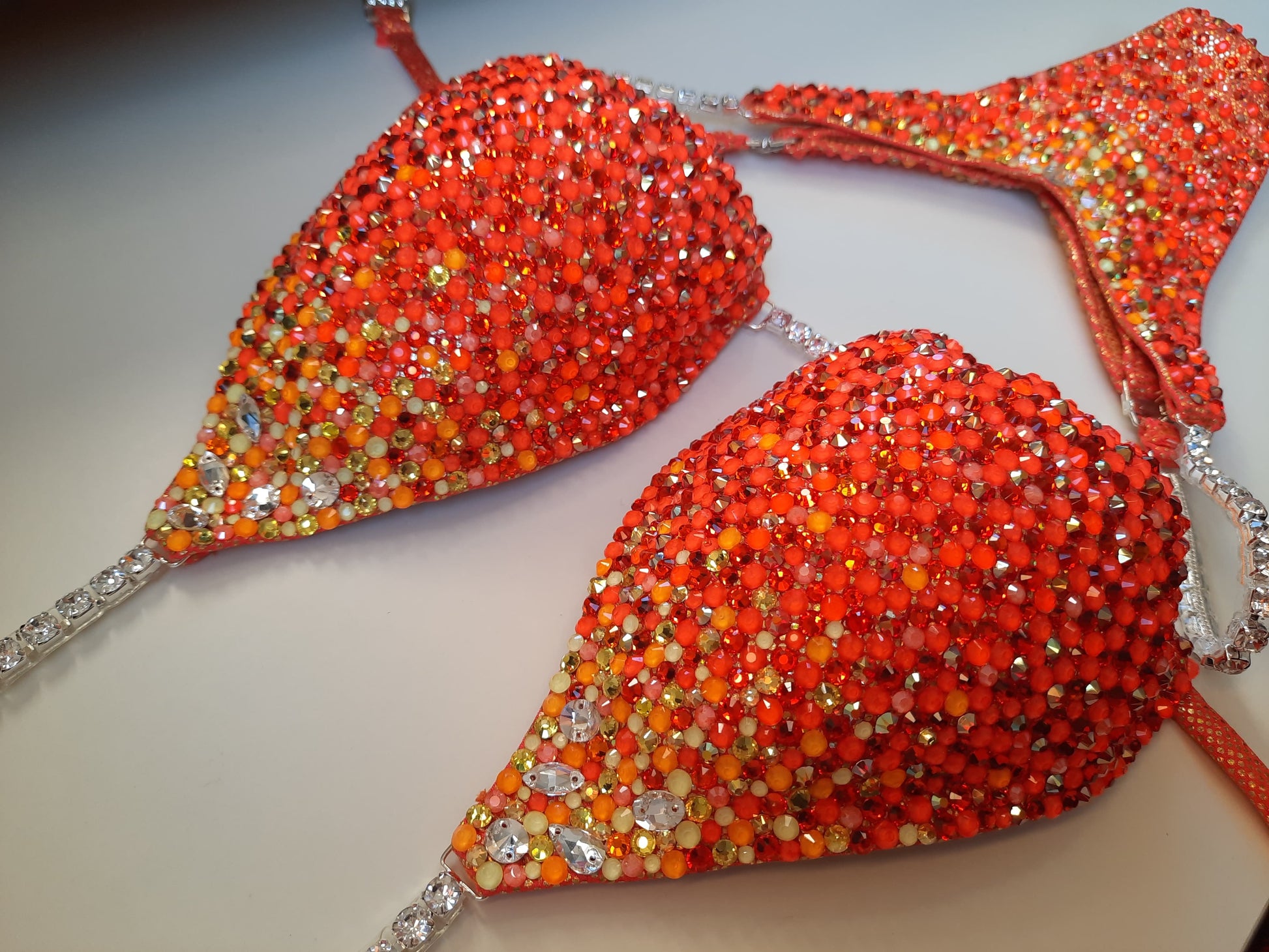 Ousado e vibrante, o Phoenix Flame é um biquíni inspirado na força e renascimento da fénix. Com cristais em tons de vermelho, laranja e dourado, evoca o brilho intenso das chamas